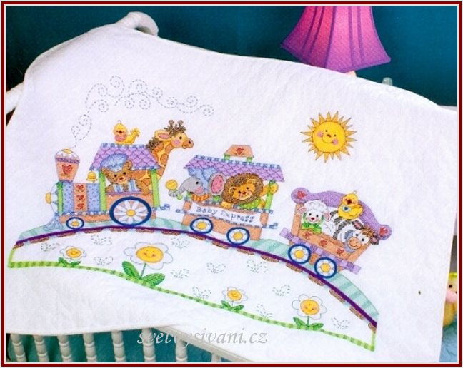 Souprava na vyšívání křížkem obsahuje:100% bavl.přízi DMC,100% bavl.nepředtištěnou Aidu 5,4 křížků/1cm (ct.14) papírovou předlohu s rozkresem,jehlu.